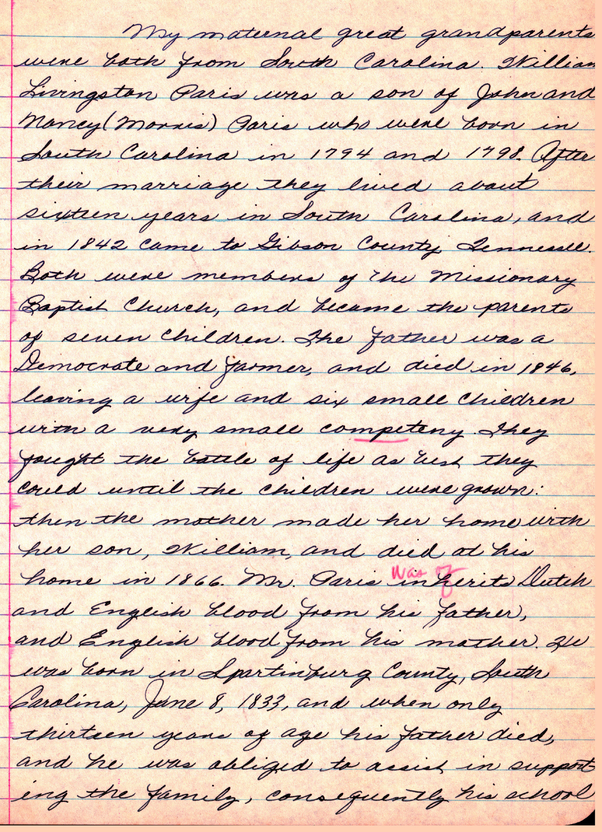 maternal great grandparents were both from South Carolina. William