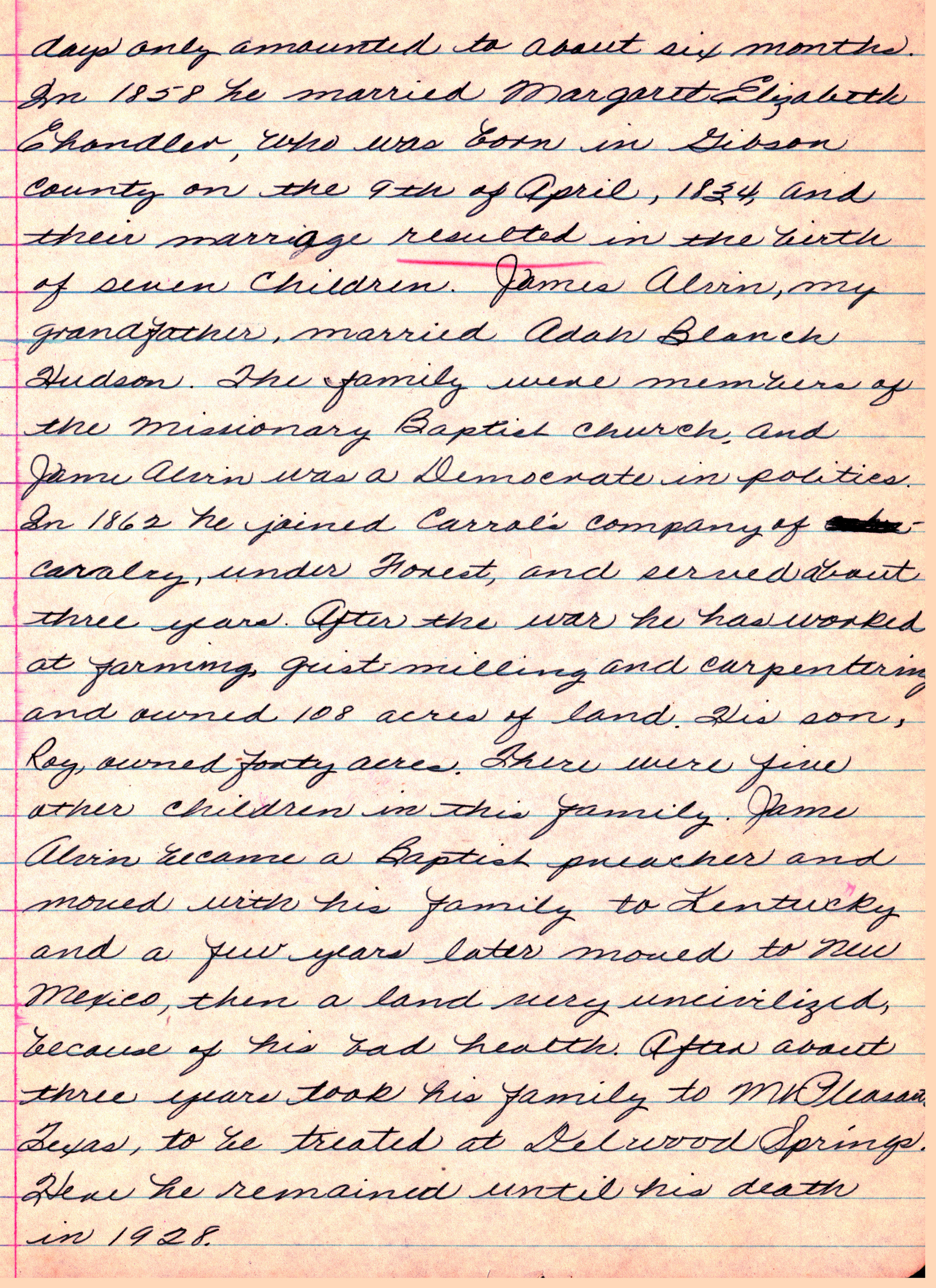 Baptist Church, and James Alvin was a Democrate in politics.