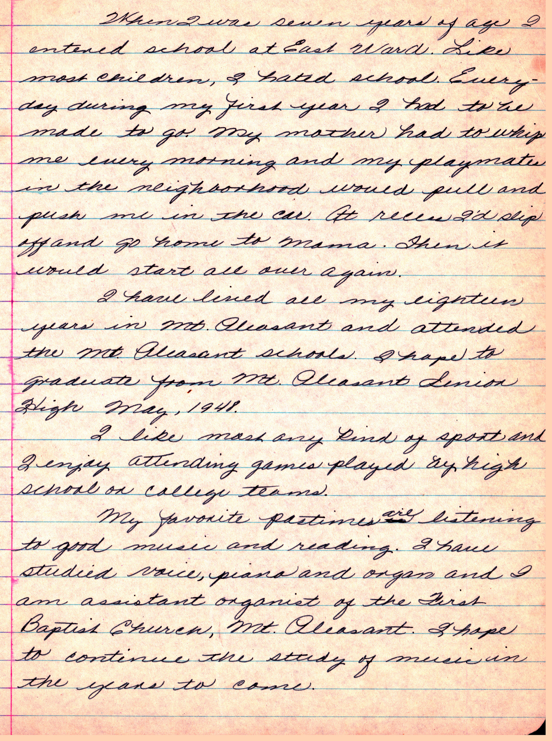 the Mt. Pleasant schools. I hope to graduate from Mt. Pleasant