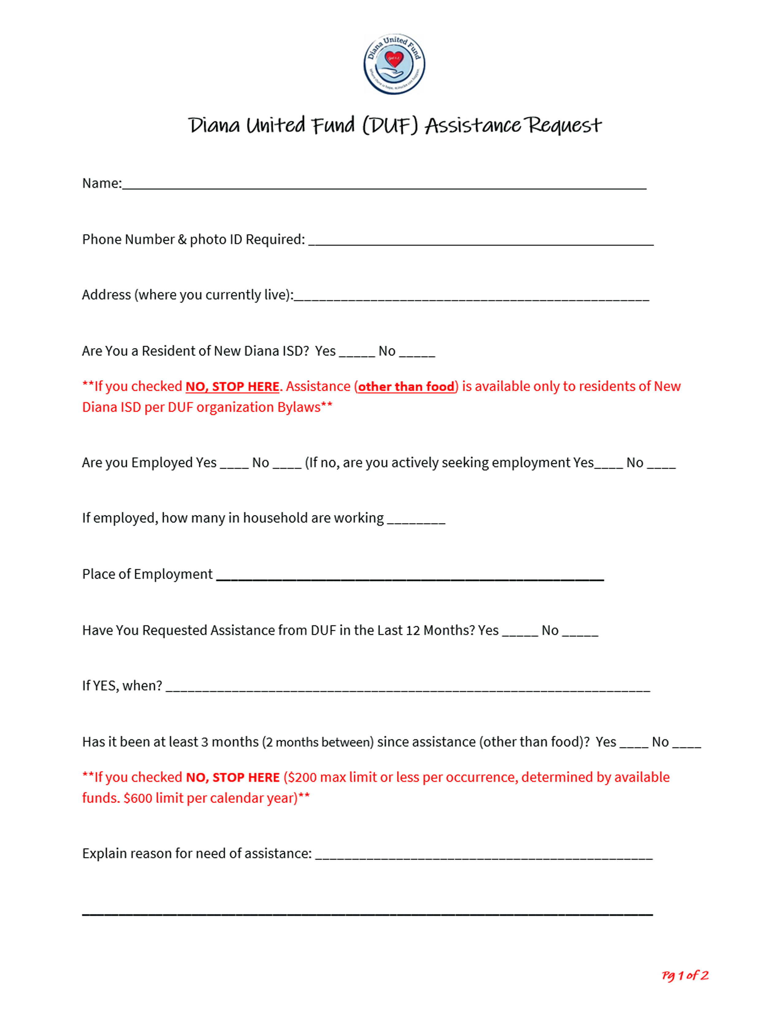 Diana United Fund - 1546 US Hwy 259N - Diana, Tx. 75640 - Phone: (903) 663-4040