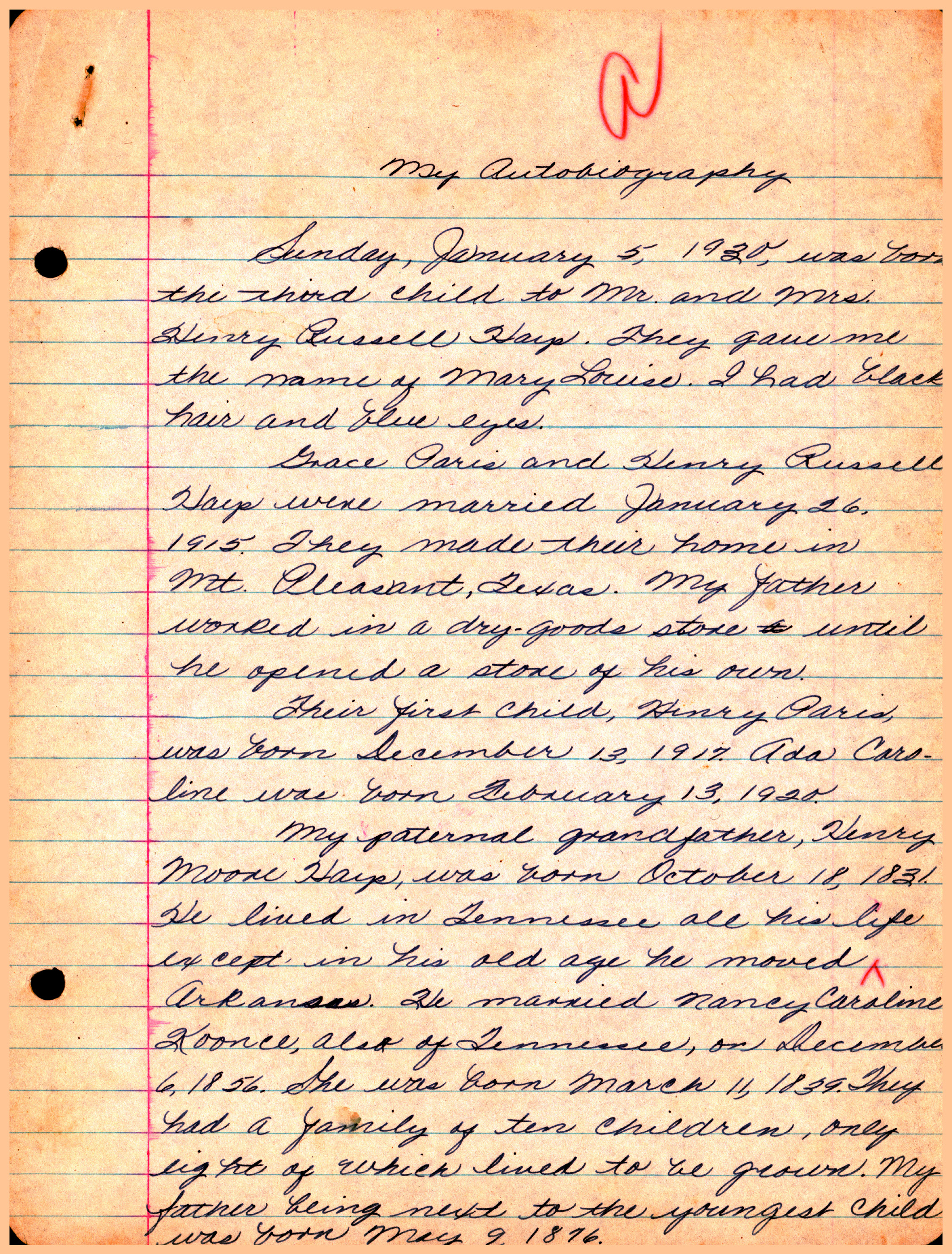 My Autobiography (by Mary Louise Hays)