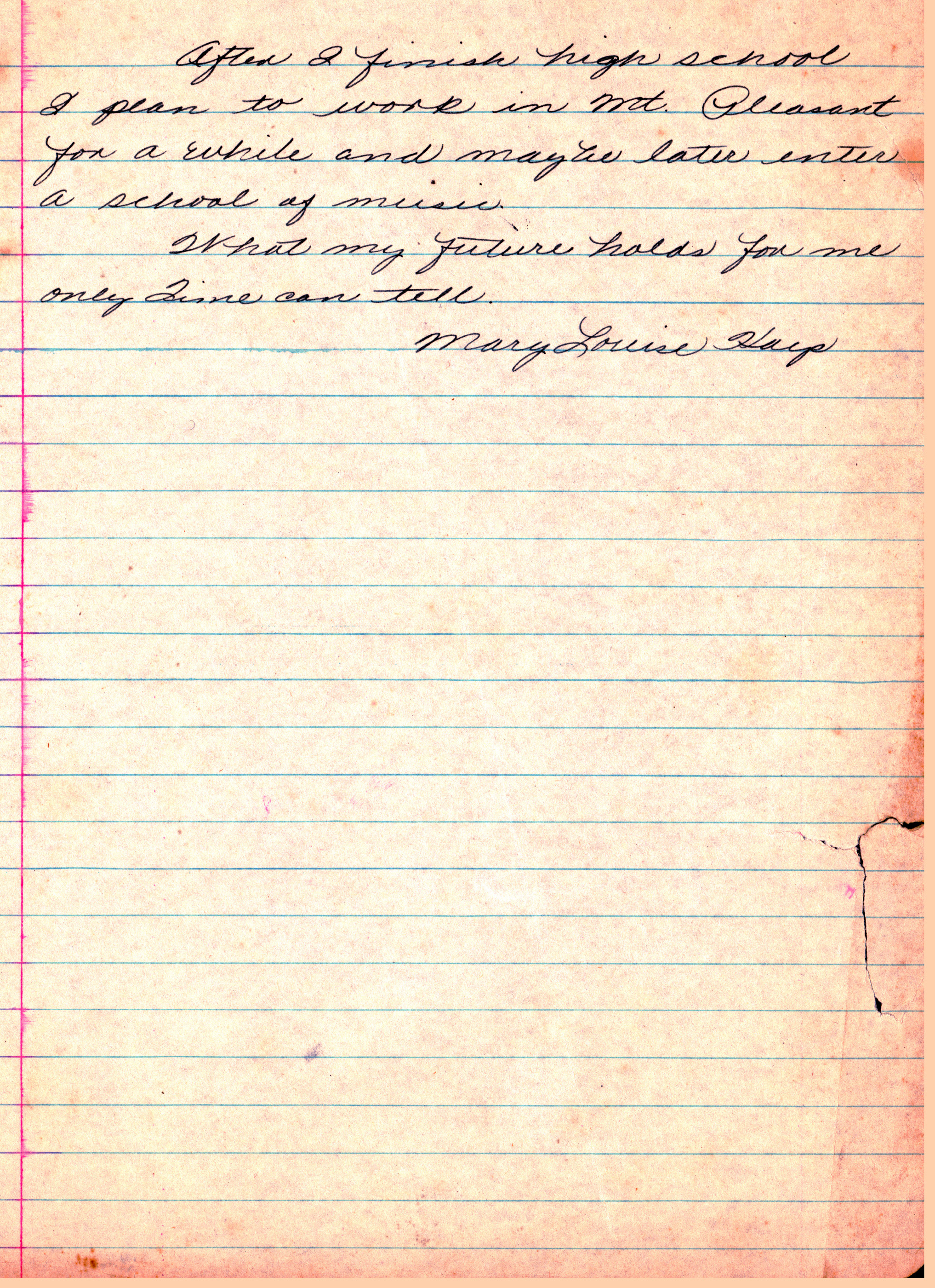 the Mt. Pleasant schools. I hope to graduate from Mt. Pleasant